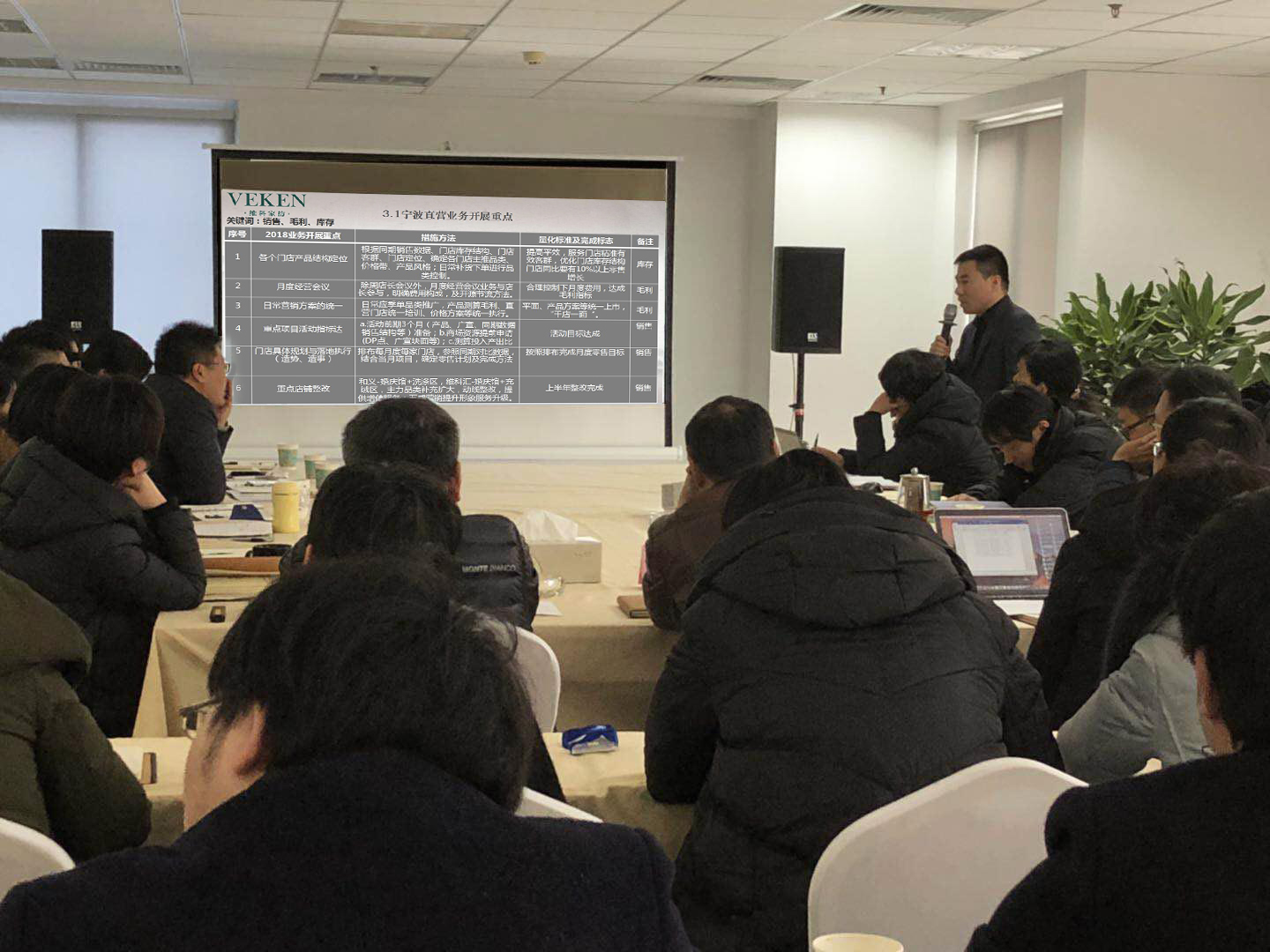 會上王吉鋒總經(jīng)理對2017年工作進行回顧總結,部署2018年工作計劃,接著圍繞2018年的八項重點工作展開闡述:1、沒有規(guī)矩,不成方圓,建設基礎管理體系標準;2、完善信息化體系建設,避免人為錯誤,提高工作效率; 3、依托大數(shù)據(jù)分析結果,植入并推廣商品運營管理思維;4、關鍵崗位引進專業(yè)人才、對標競品,搭建具有競爭力的團隊,5、業(yè)績共享、成果共享,建設維科家紡成果共享激勵制度;6、以寧波老三區(qū)為重點拓展區(qū)域,布局維科家紡網(wǎng)點;7、模式、機制、產(chǎn)品等三方面來實現(xiàn)團購業(yè)務突破;8、打造維科家紡中式婚慶定位。18年強化結果導向意識發(fā)揚“釘子”精神,希望各級團隊“嚴、實、快、勤”求真務實,敢于擔當。