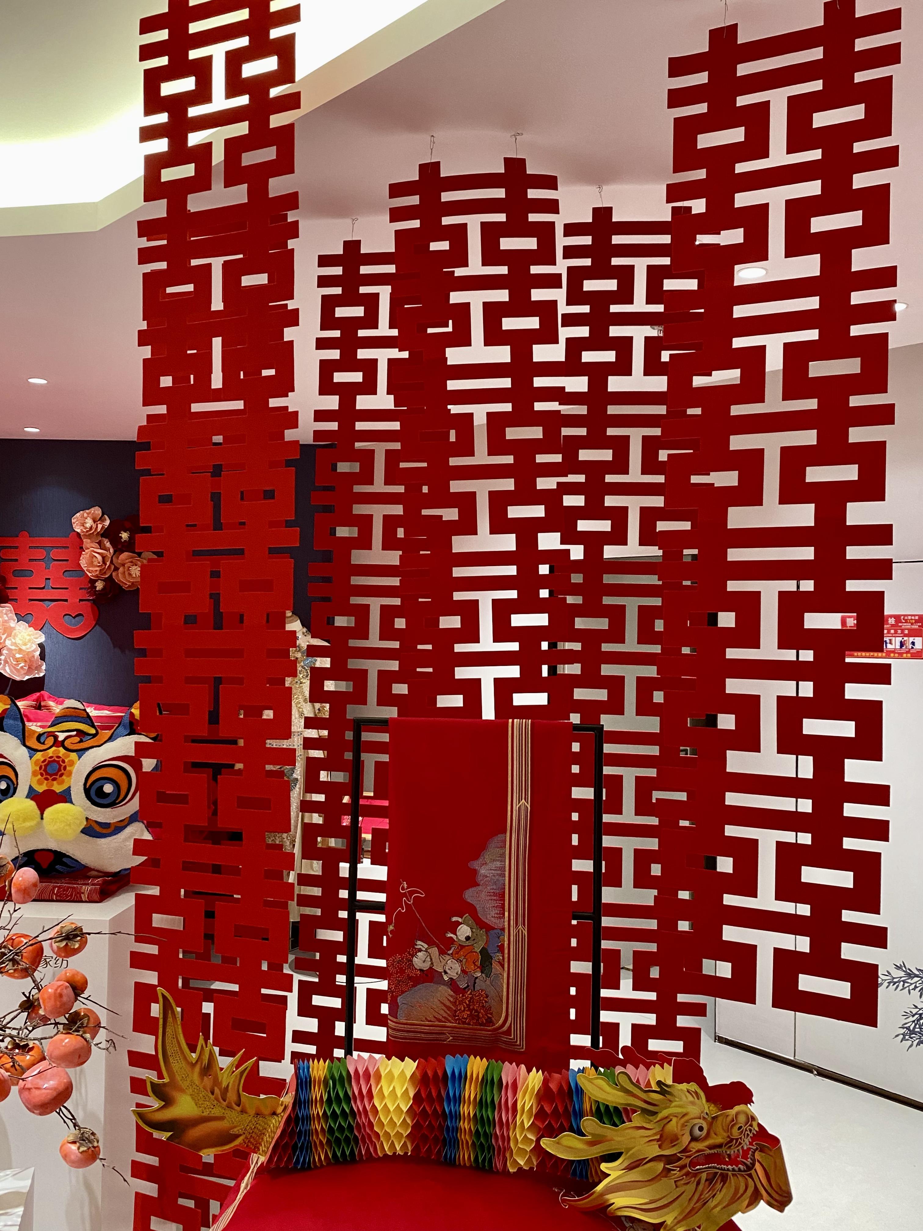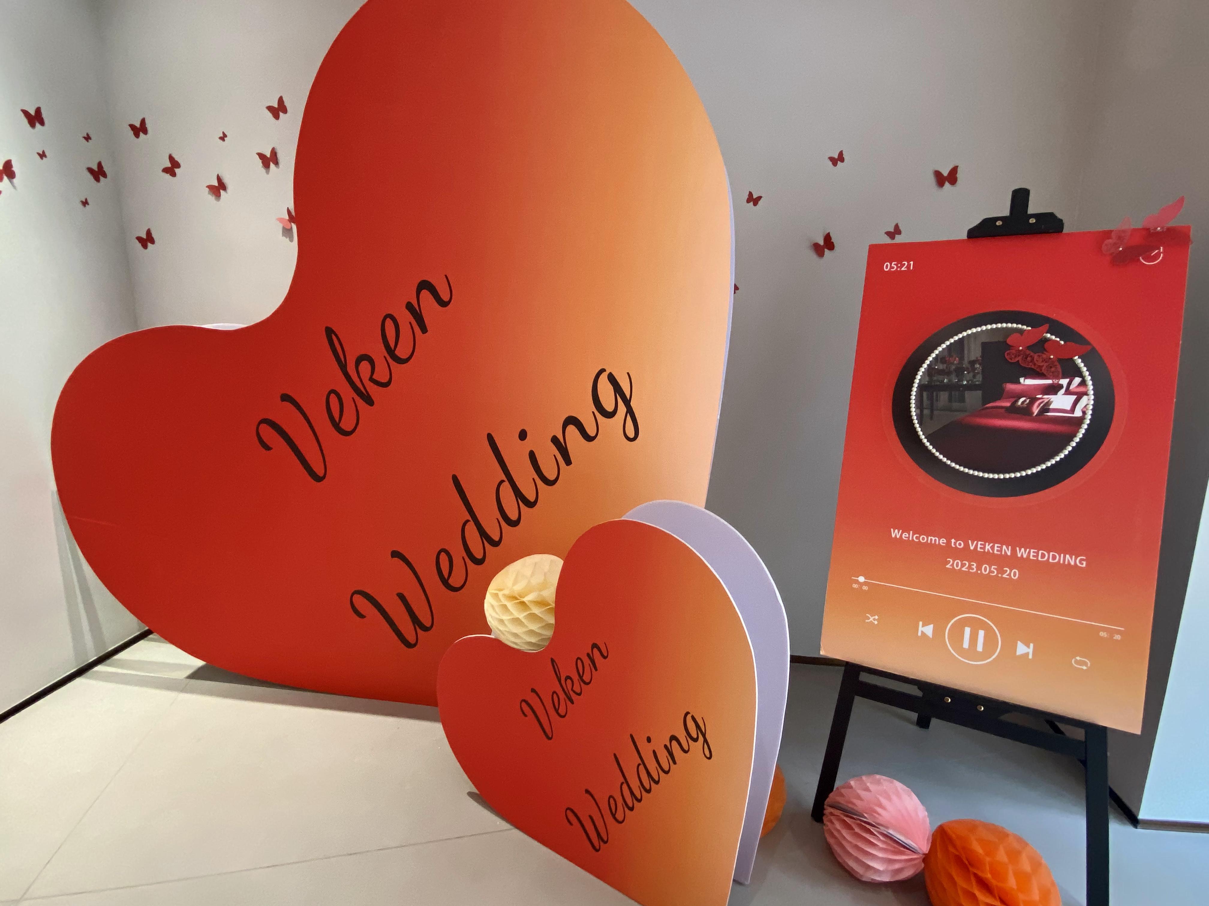 婚慶區(qū)通過精美的垂掛之“囍”、婚禮唱片機、維科喜樹等道具營造出浪漫而喜慶的氛圍,創(chuàng)造了一個令人陶醉的夢境。